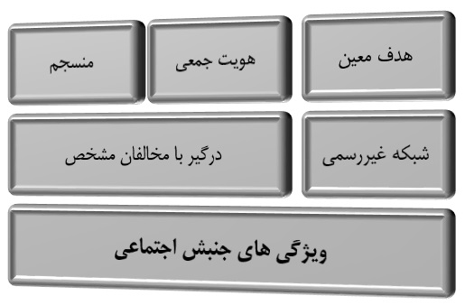 برخی از ویژگیهای جنبشهای اجتماعی این است که آنها «درگیر روابط متضاد با مخالفان کاملاً مشخص هستند؛ توسط شبکههای غیررسمی منسجم به هم متصل هستند؛ و یک هویت جمعی متمایز دارند».